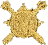 n. Diving Officer. A gold embroidered Diver's helmet with face plate, square knot and breast plate bolts embroidered in silver.