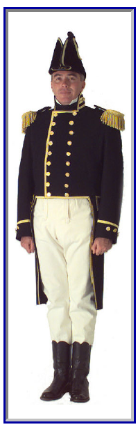 a. General. The Commanding Officer, USS CONSTITUTION, provides regulation 1813 pattern naval uniforms. The 1813 pattern uniform is organizational issue clothing. Only personnel permanently assigned to USS CONSTITUTION may wear Navy-issued 1813 pattern uniforms. The 1813 pattern uniform is designated as either “Winter 1813s” or “Summer 1813s.” The uniform is modeled on U.S. Navy Uniform Regulations of 23 November 1813 and will normally be worn to educate and inform the public about early naval heritage. Photographs of the uniform sets are provided (Figure 6-2-1, Figure 6-2-2, Figure 6-2-3, Figure 6-2-4 and Figure 6-2-5).
