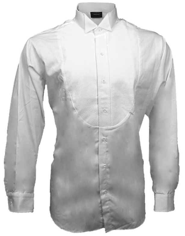 a. Description. A stiff-bosomed plain or pique, unpleated white Formal Dress shirt, with a Wing Collar (Figure 3501.52-1). Plain white shirt studs (Mother-of-Pearl) and cuff links (Mother-of-Pearl) are required.