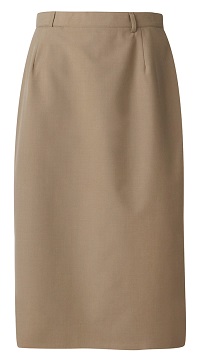 A plain, khaki, belted skirt made of 75% Polyester/25% wool or 100% Polyester CNT fabric. The khaki skirt comes in two configurations: A-line and Straight-line openings. The A-line skirt (figure 3501.63-1) contains two front welt pockets and back zipper closure. The Straight-line skirt (figure 3501.63-2) has one hidden side pocket and side zipper closure. The shirt and skirt fabric must match (i.e. CNT with CNT and poly/wool with poly/wool).